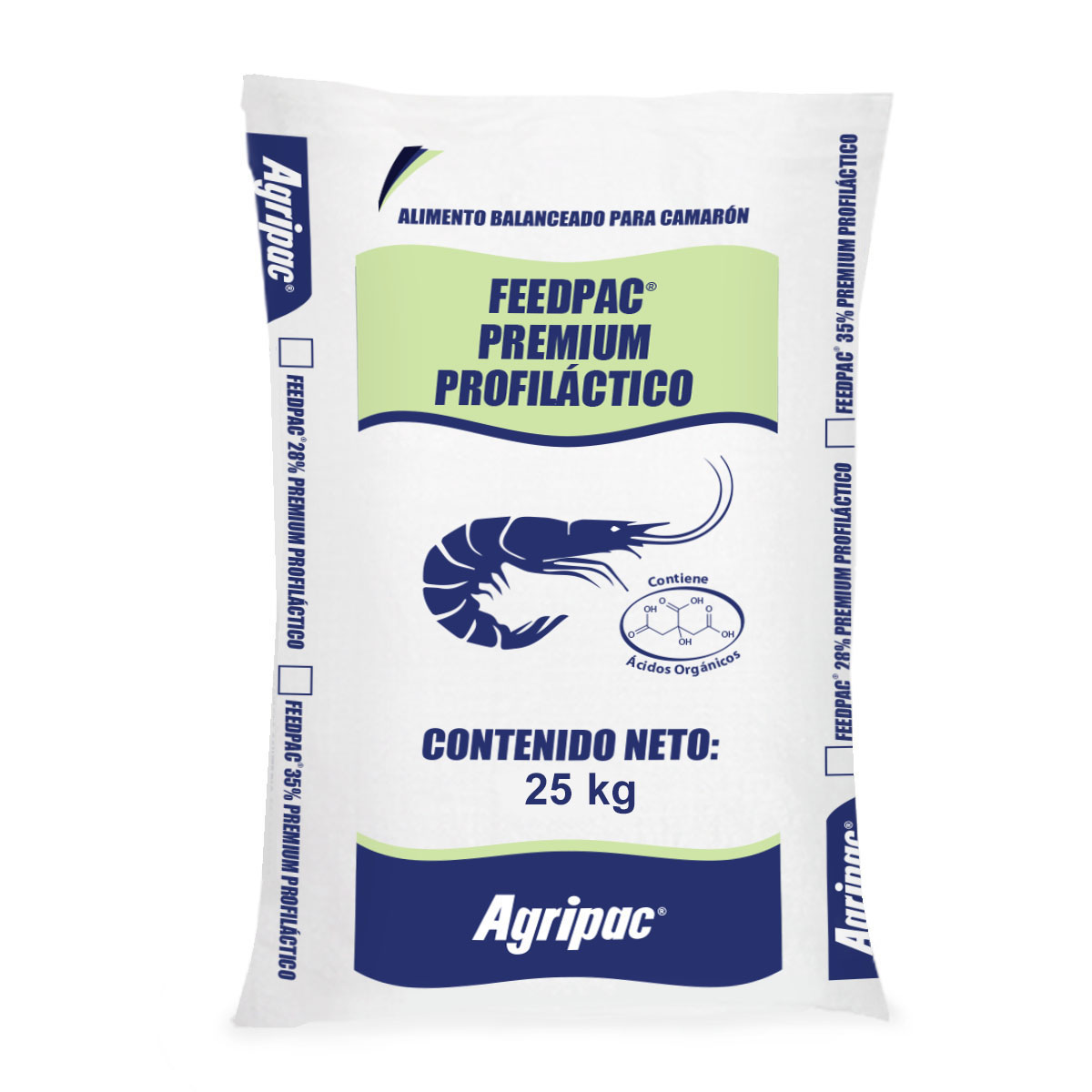Alimento balanceado pelletizado para cultivo de camarón. Línea Premium: dirigida a cultivos con densidades de hasta 12.000 por Ha, de alta digestibilidad con la mejor conversión alimenticia.