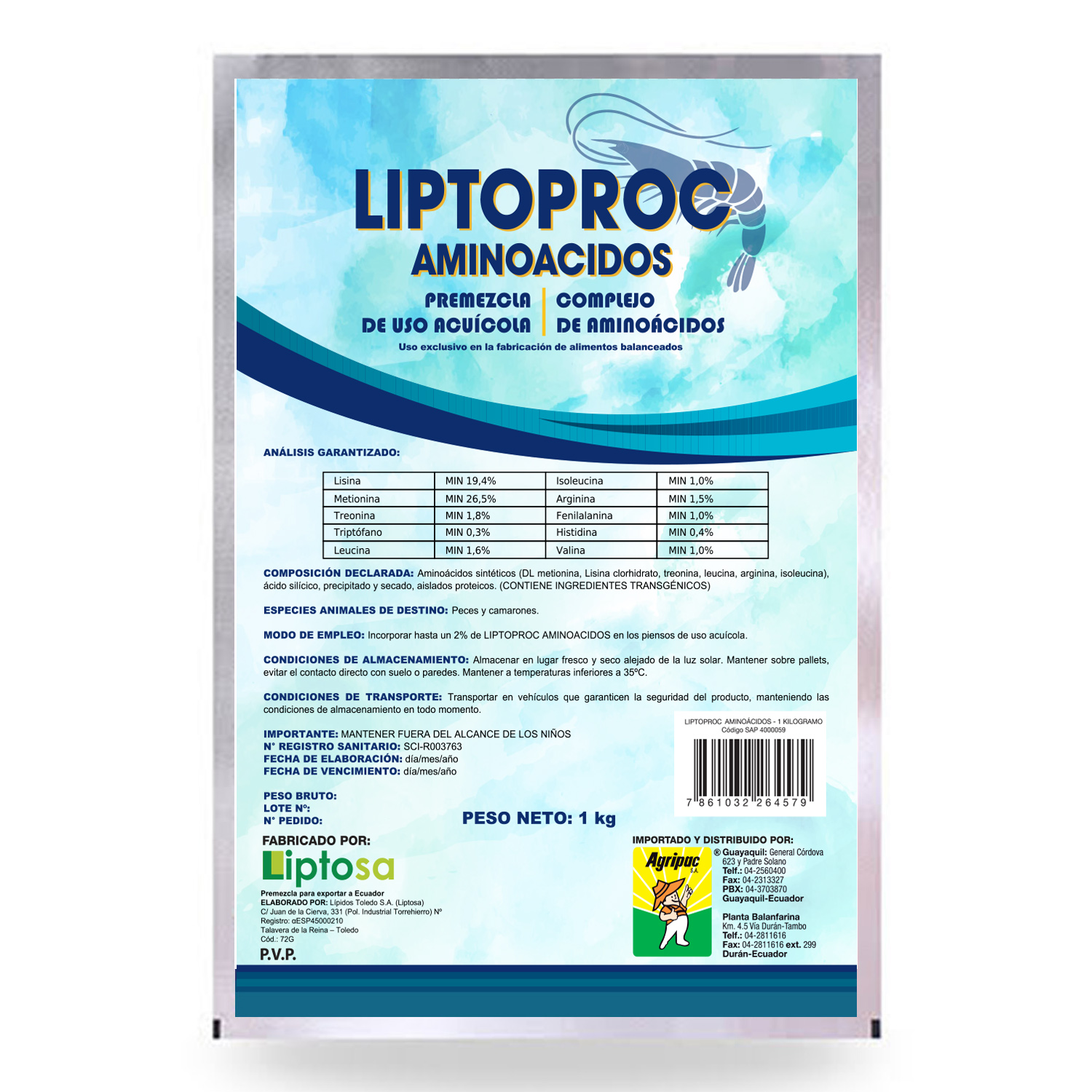 Pre mezcla de uso acuícola con complejo de aminoácidos.