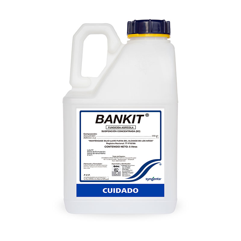 Bankit es un fungicida preventivo de amplio espectro, con acción protectante y curativa contra la Sigatoka Negra. Controla la mayoría de las enfermedades causadas por los hongos pertenecientes a las clases de los ascomicetos, basidiomicetos, deuteromicetos o imperfectos y omicetos. Ingrediente activo: Azoxistrobin.